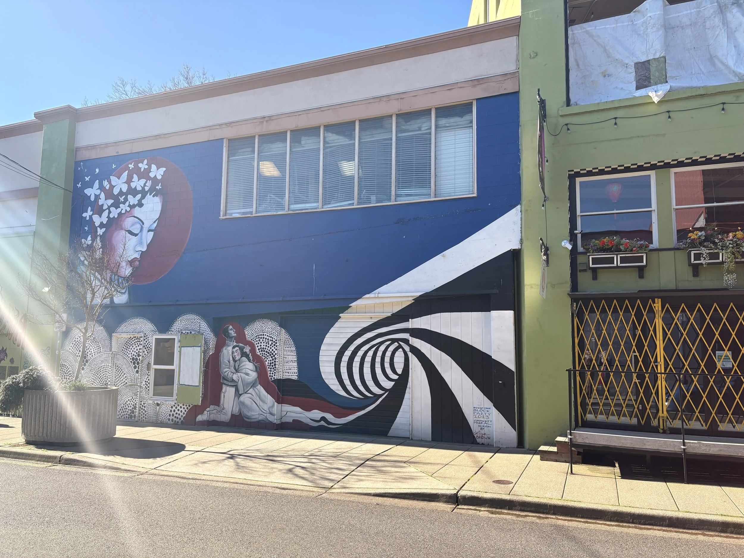 Tenderness is the inspiration of an artist beautifying an old building with their creativity.